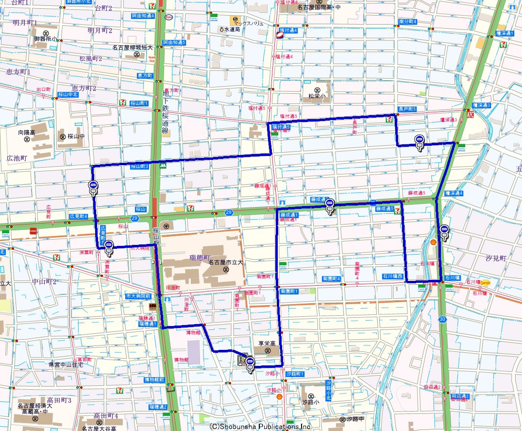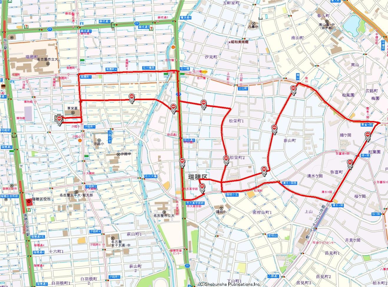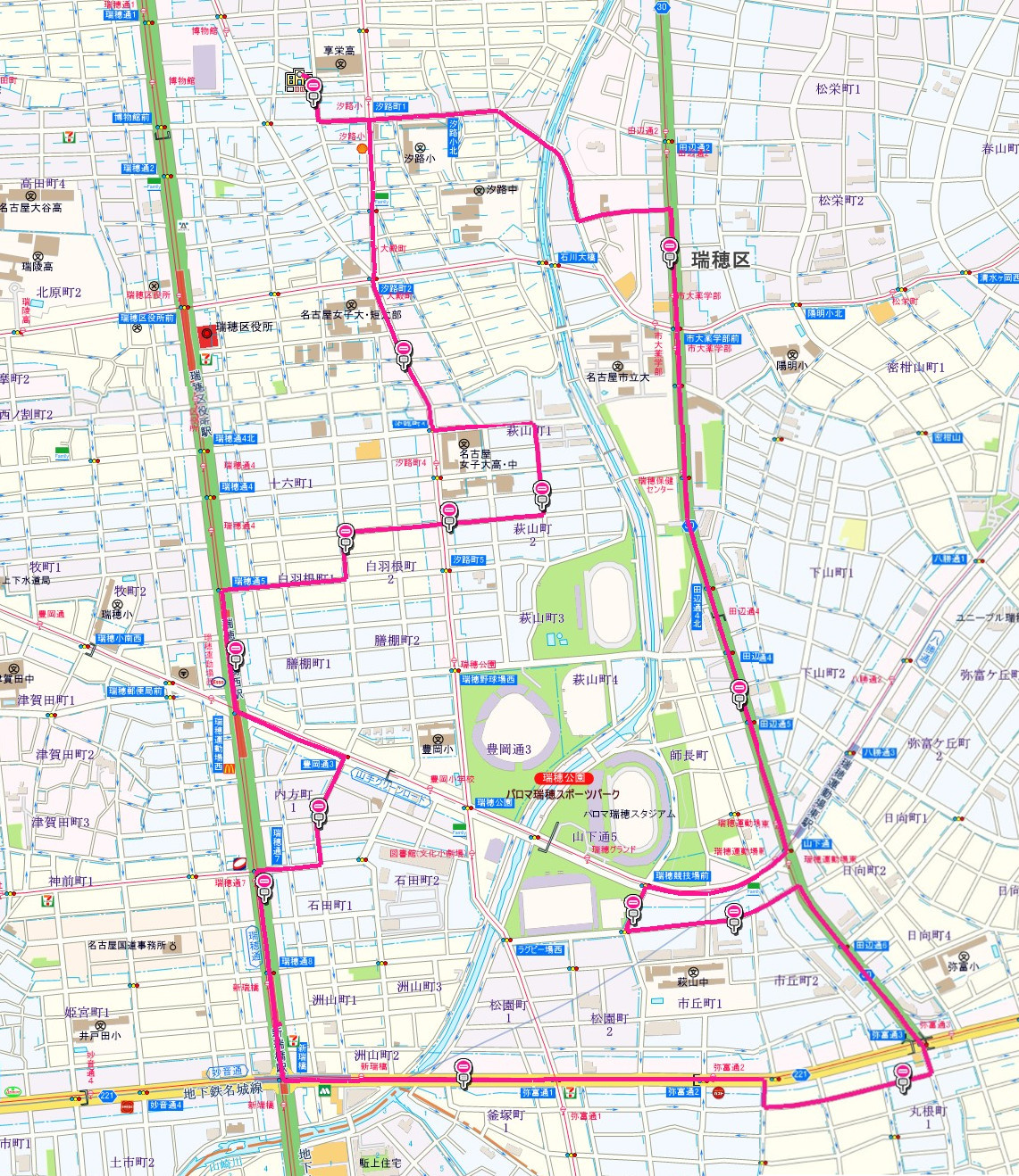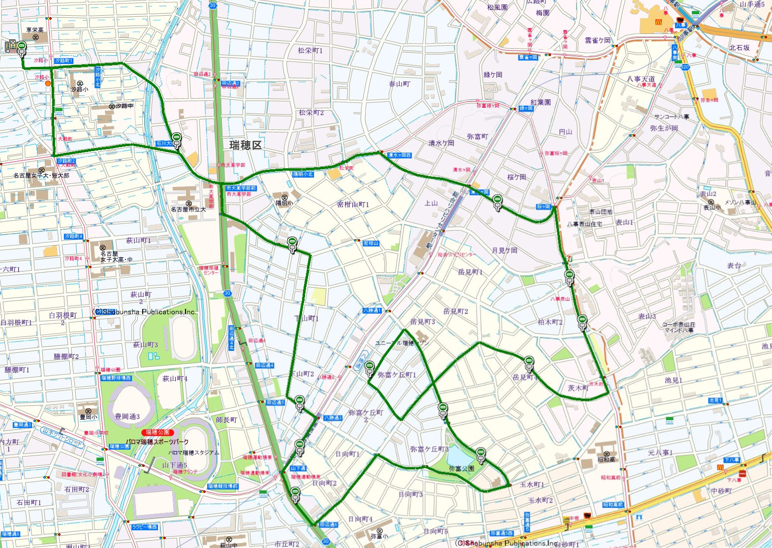 ※画像のピンが立っている位置はバス停ではなくルートをつなぐ為のものもあります。