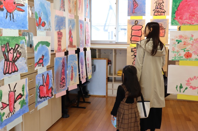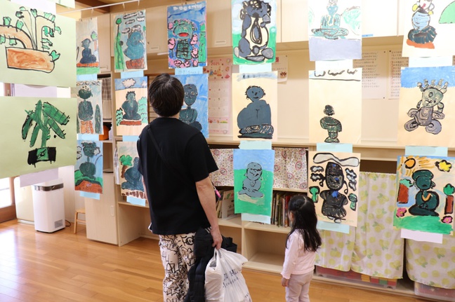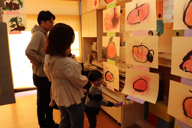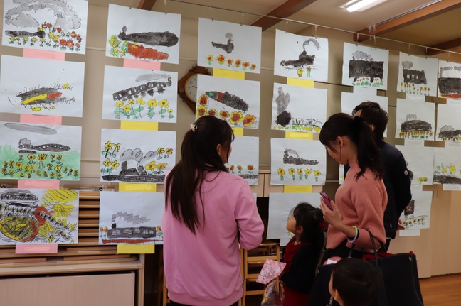 今まで描いてきた絵が壁一面に飾られ、それぞれの学年ならではの作品に、見に来てくださった方々からもいろいろな感想を聞かせていただきました。