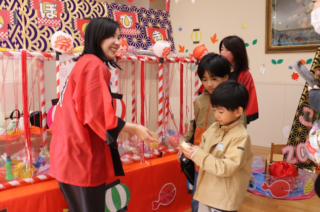 にこにこ祭りも、お母様方の工夫やアイデアが溢れていて、子どもたちもとても楽しくゲームを体験していました。