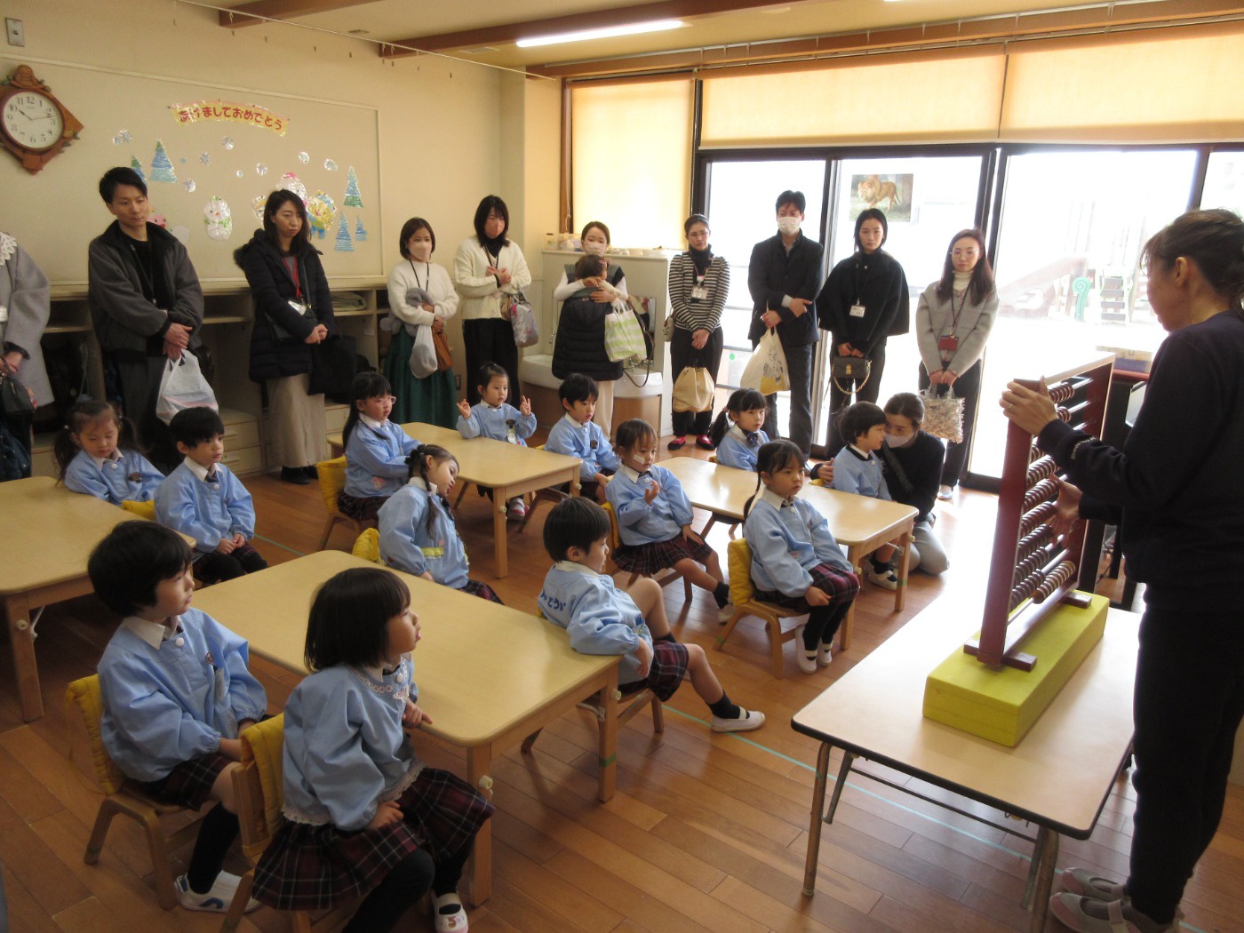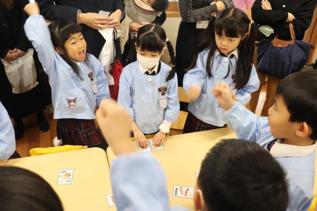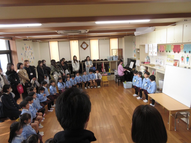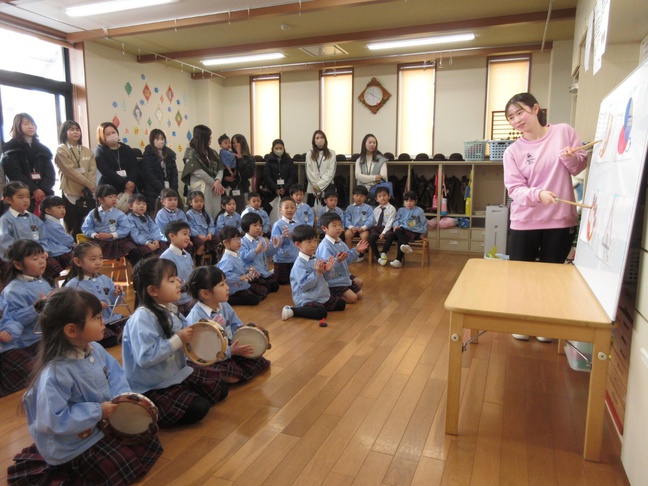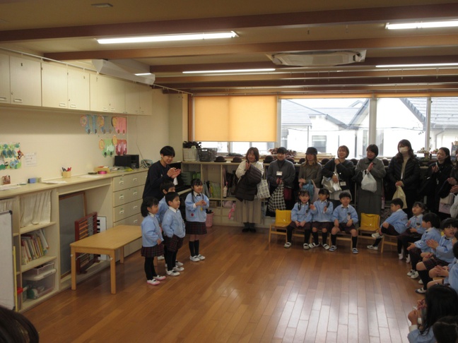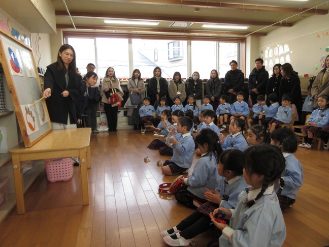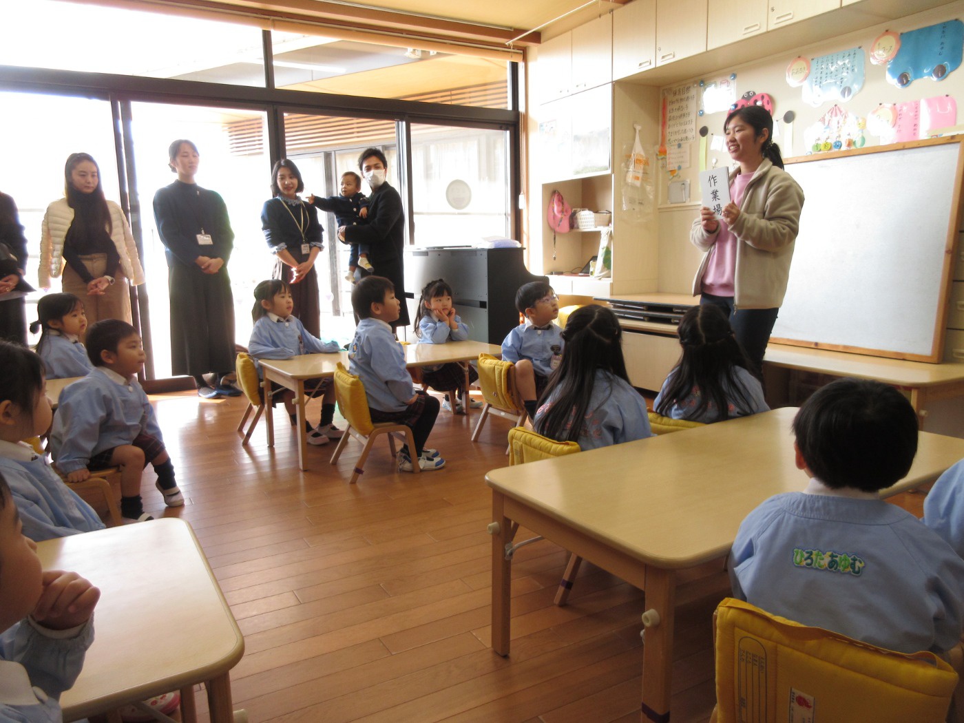 2026年01月29日(木) 保育参観 14日~16日の3日間で最後の保育参観を行いました。 1日目は年長組で、かるた作りをして遊びました。読み札を保護者の人と一緒に考え、その後作ったかるたで遊びました。いろいろな言葉を考え、面白いかるたができました。その後もお部屋で楽しんで遊んでいます。 2日目は年中組で、楽器遊びを行いました。保護者の方にも参加していただき、子どもたちもとても楽しそうでした。 3日目は年少組で、製作を行い、はさみの使い方を保護者の方に見ていただきました。