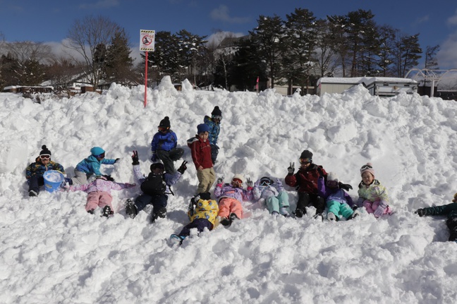 2026年01月30日(金) 年長組雪遊び 3学期に入ってすぐ、年長組の子どもたちが雪遊びをしに郡上まで出かけました。 天候が心配されましたが、当日は晴天で、前日に降った真っ白な新雪が気持ちよく、思い切り雪遊びを楽しむことができました。普段ではなかなかできない貴重な体験ができました。