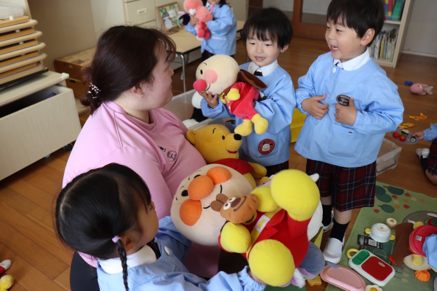 年少さんもまだドキドキしながら門をくぐっていますが、自分のクラスも覚えてお部屋のおもちゃで楽しそうに遊んでいます。年長さんや年中さんもまだ新しい環境に慣れないこともありますが、張り切って年少さんをお部屋に連れて行ってくれたりしています。
