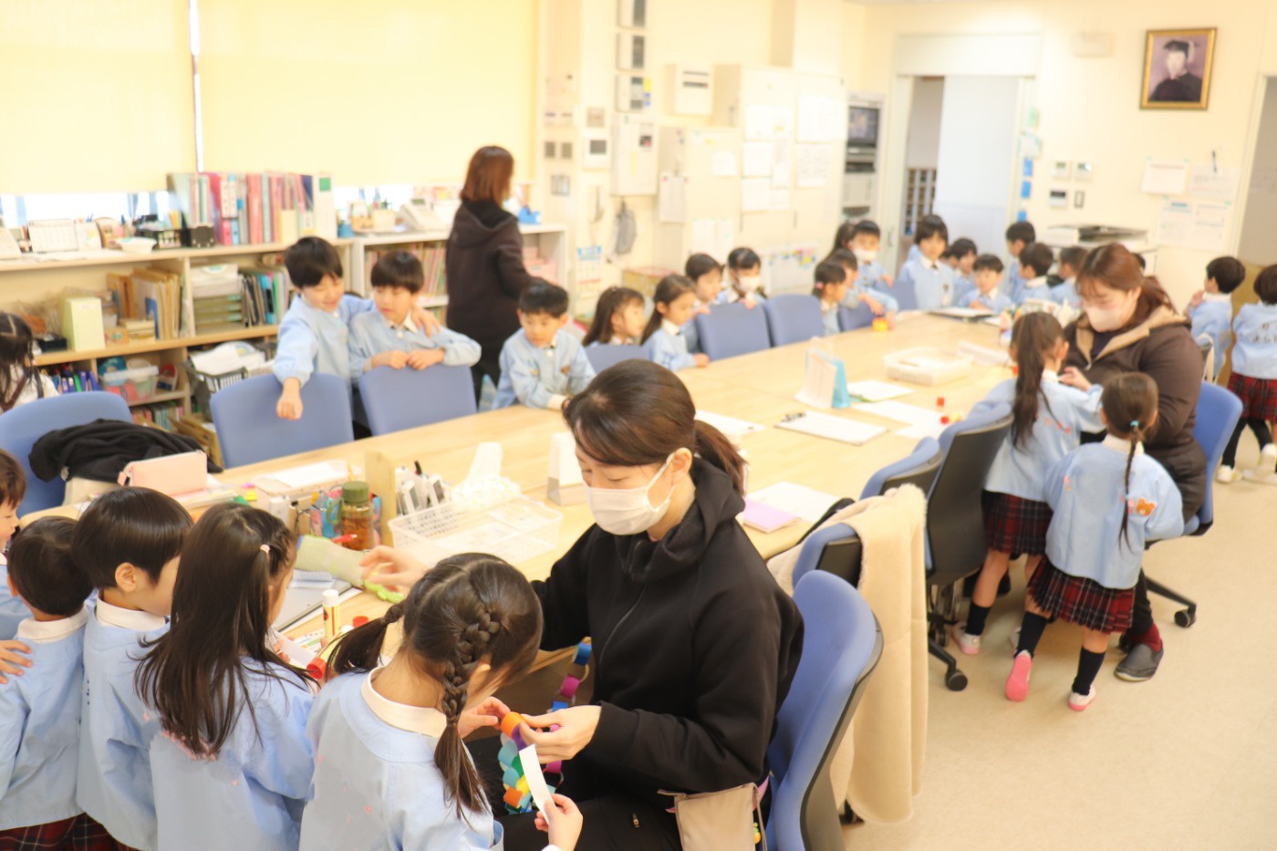 子どもたちや職員皆で今までの感謝の気持ちを込めて輪繋ぎを作り、飾りました。